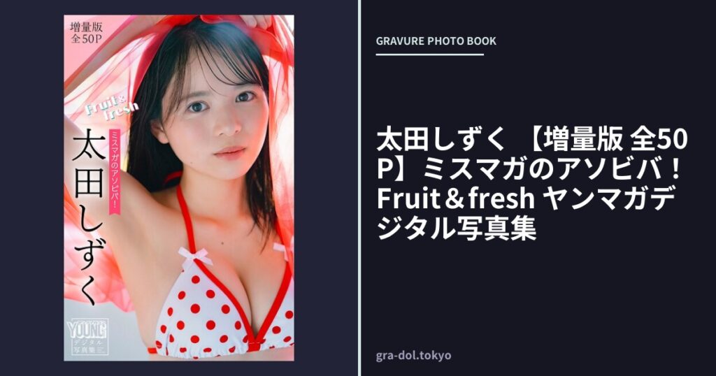 今回「グラビア’s東京」が自信を持ってお届けする記事は「太田しずく 【増量版 全50P】ミスマガのアソビバ!Fruit&fresh ヤンマガデジタル写真集」です。ではどうぞ!